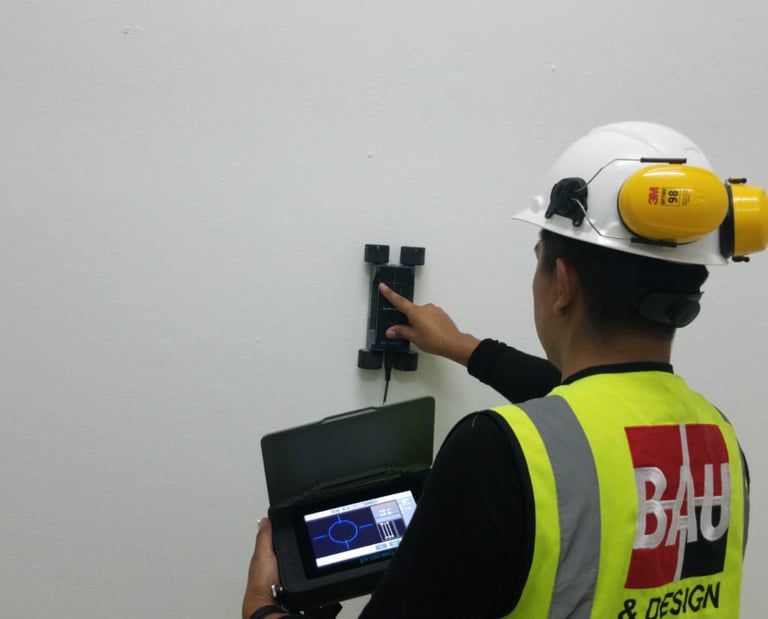 At bau & design s.a.c., we specialize in thorough structural diagnosis using both non-destructive and destructive tests.